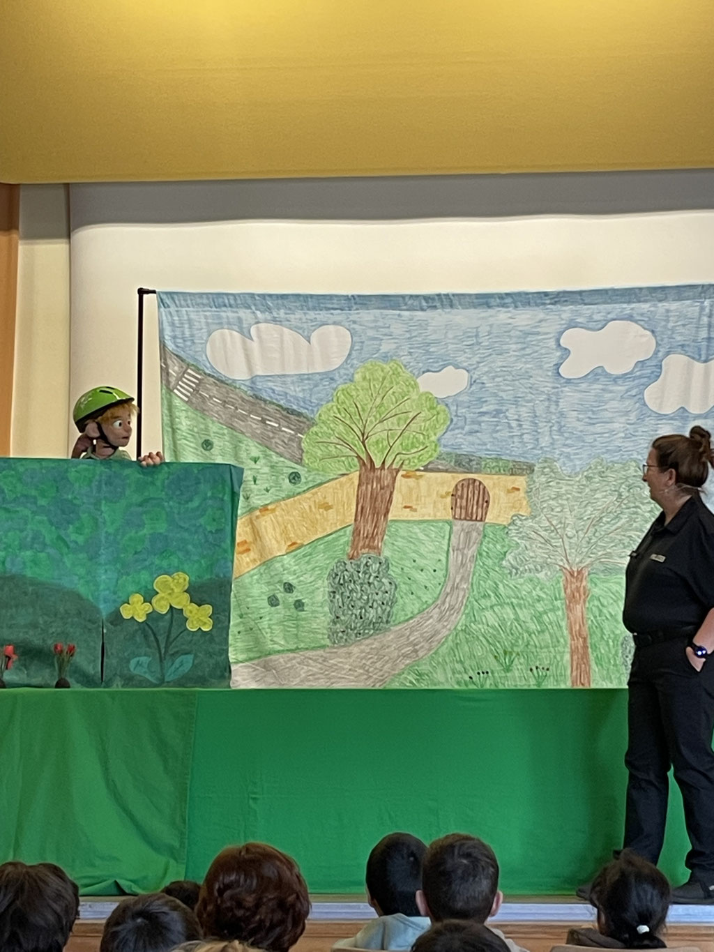 Am Mittwoch besuchten die Klassen 1a und 1b das Verkehrsstück "Die Schatzsuche" der Präventionspuppenbühne der Polizei. Spielerisch und mit viel Humor lernten die Kinder, wie sie sich auf dem Schulweg richtig verhalten können, um sicher ans Ziel zu gelangen. Besonders das Lied "An der Bordsteinkante mache ich Halt" blieb allen im Gedächtnis und wird sicherlich noch auf dem Pausenhof weitergesungen.