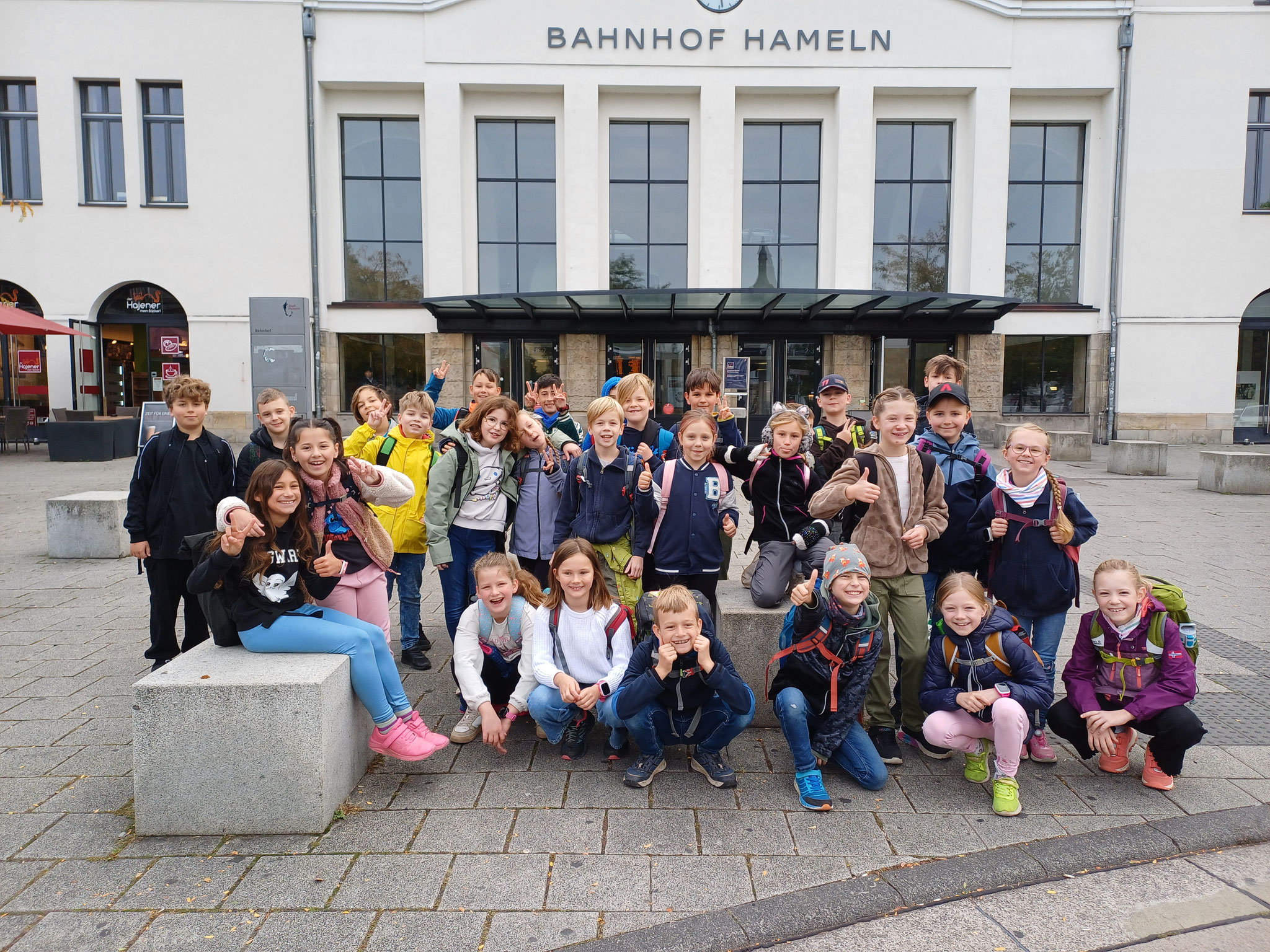 In der Woche vom 19. bis zum 23.08.2024 fand die Klassenfahrt der Klasse 4b auf die Insel Spiekeroog statt. Zunächst fuhren wir mit dem Reisebus nach Neuharlingersiel. Von dort aus fuhren wir dann eine Dreiviertelstunde mit der Fähre. Auf Spiekeroog angekommen sind wir dann zum Haus Sturmeck im Westen der Insel gegangen, wo wir die Woche über gewohnt haben. Wir haben zunächst unsere Zimmer bezogen, das Gelände erkundet und sind dann das erste Mal an den Strand gegangen. Am zweiten Tag stand eine Kutterfahrt auf dem Programm. Mit der "Gorch Fock" sind wir erst einmal hinaus aufs Meer gefahren. Dort wurde dann ein Netz ausgeworfen und wir konnten uns ansehen, welche Tiere in der Nordsee leben. Als Seehundklasse mussten wir danach natürlich noch zu einer Seehundbank fahren und uns unser Klassentier in der freien Natur ansehen. Nach der Kutterfahrt sind wir zum Baden an den Strand gegangen. Am dritten Tag haben wir Spiele gespielt, den Ort Spiekeroog erkundet und sind dann wieder an den Strand gegangen um Burgen zu bauen und zu spielen. Am Donnerstag sind wir Minigolf spielen gegangen und waren noch ein letztes Mal im Ort. Am Freitag mussten wir leider schon die Heimreise antreten. Bei stürmischen Wetter sind wir zunächst mit der Fähre und dann mit mehreren Zügen zurück nach Hameln gefahren. Die Klassenfahrt hat allen sehr viel Spaß gemacht!