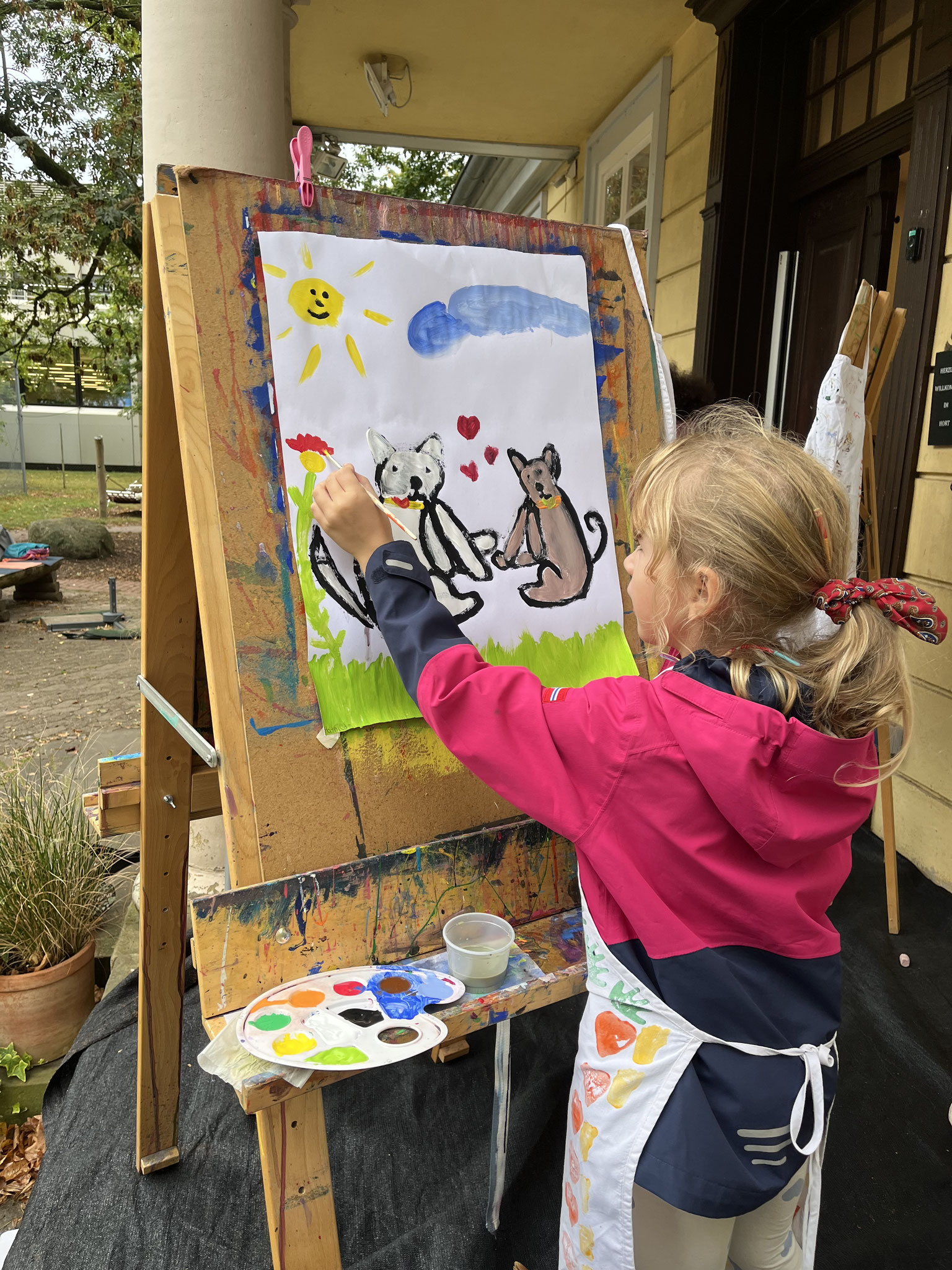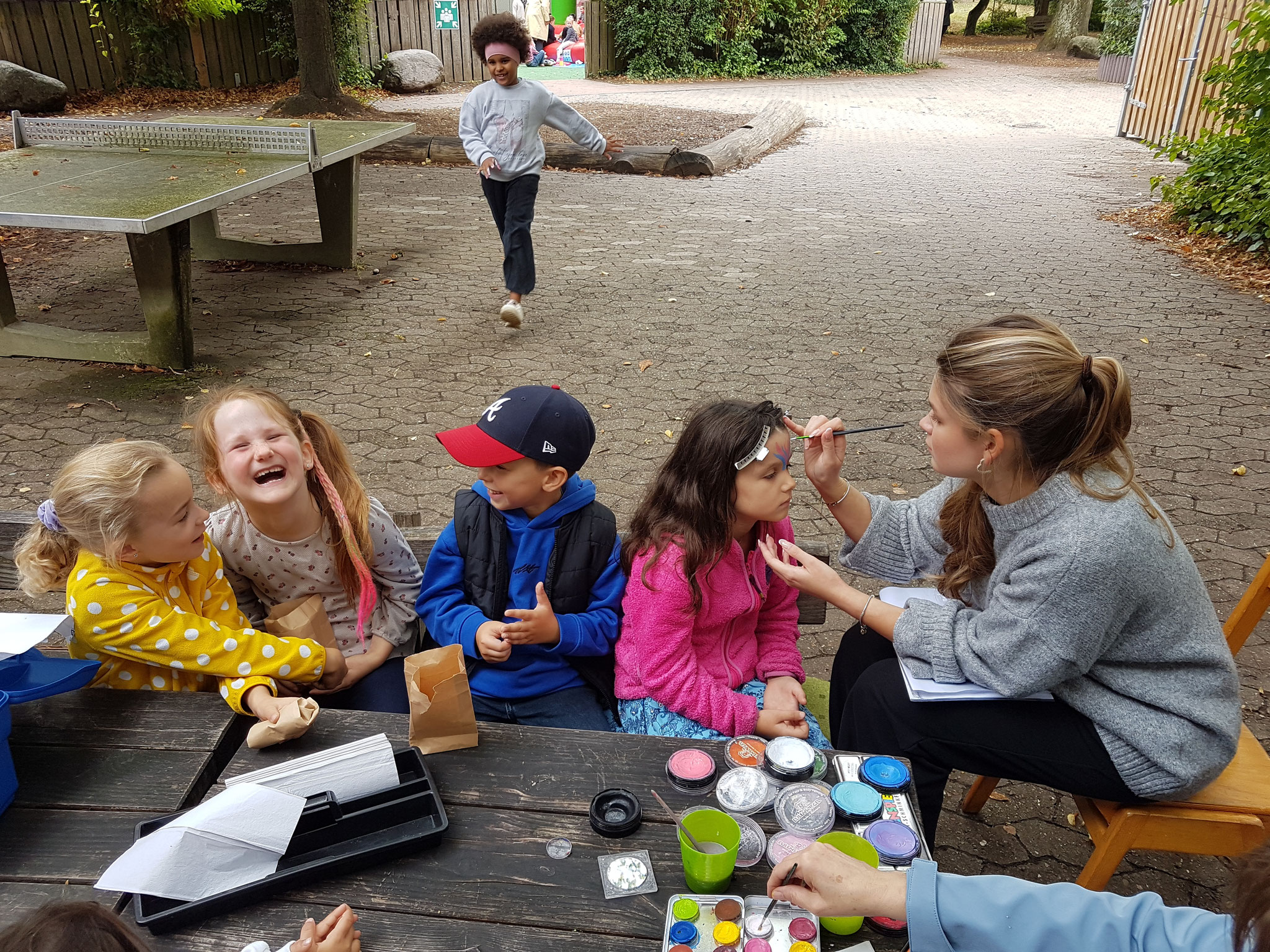 Den Tag in der Kita verbrachten wir mit tollen Aktionen: Wir suchten Edelsteine im Sand, ließen uns schminken, spielten auf der Hüpfburg, malten an der Staffelei oder spielten auf dem tollen Gelände der Kita. Nach einem ereignisreichen Vormittag kehrten wir erschöpft, aber glücklich zur Niels-Stensen-Schule zurück.