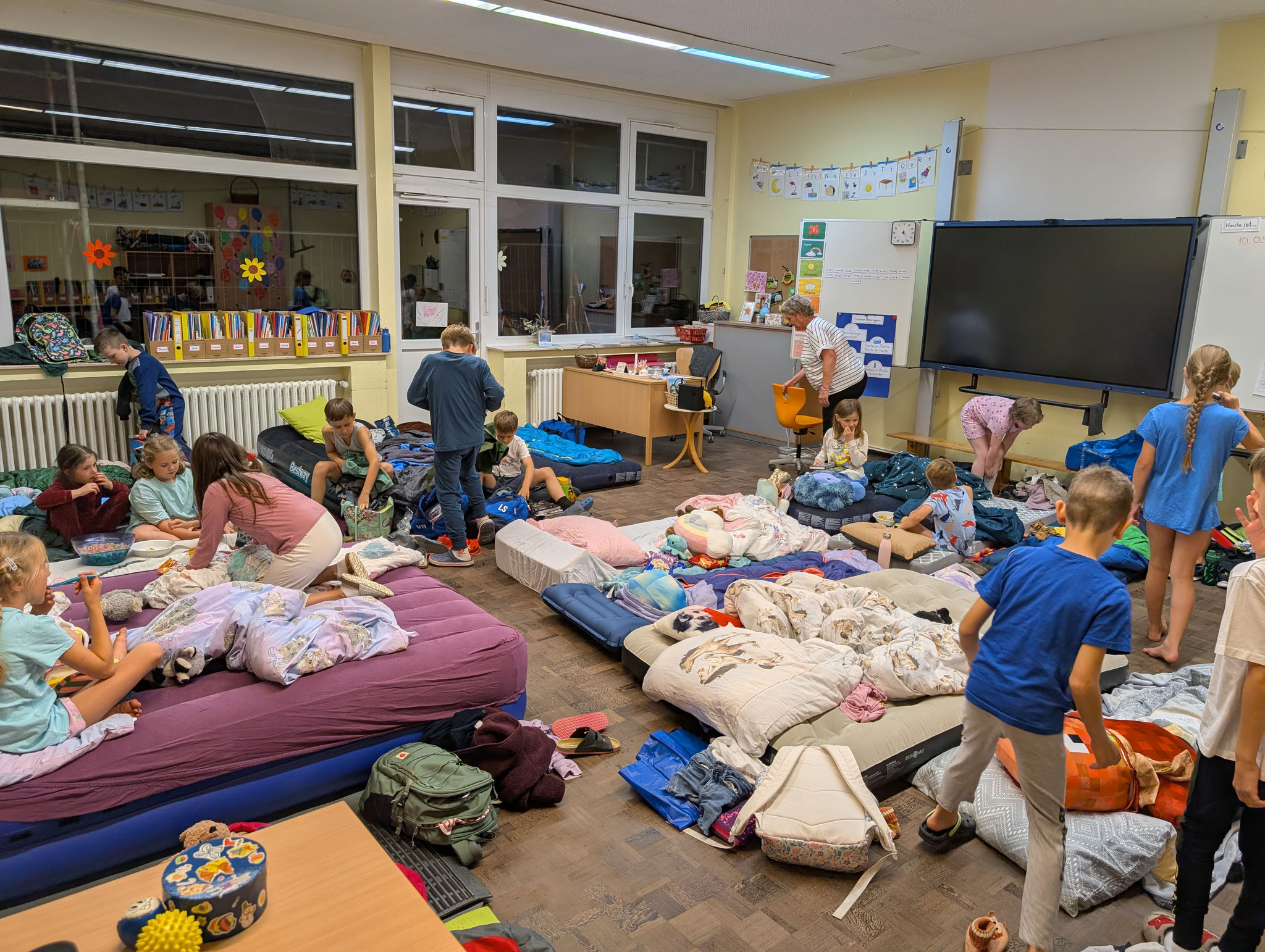 Am Anfang mussten wir uns von unseren Eltern verabschieden und haben eine Lesejagd gemacht. Wir mussten Karten suchen. Das war lustig, weil immer alle gedrängelt haben. Sie war aber auch ein