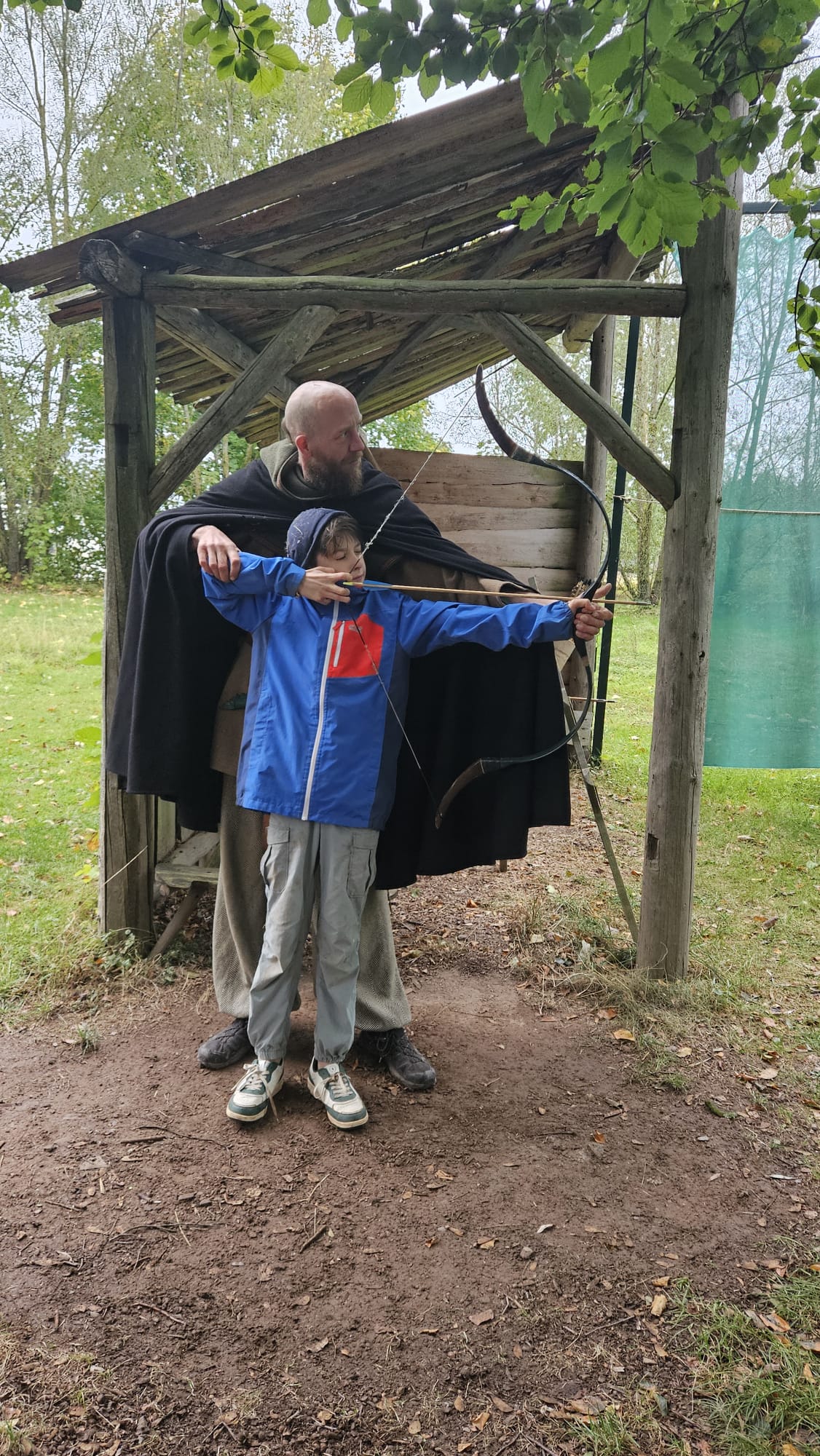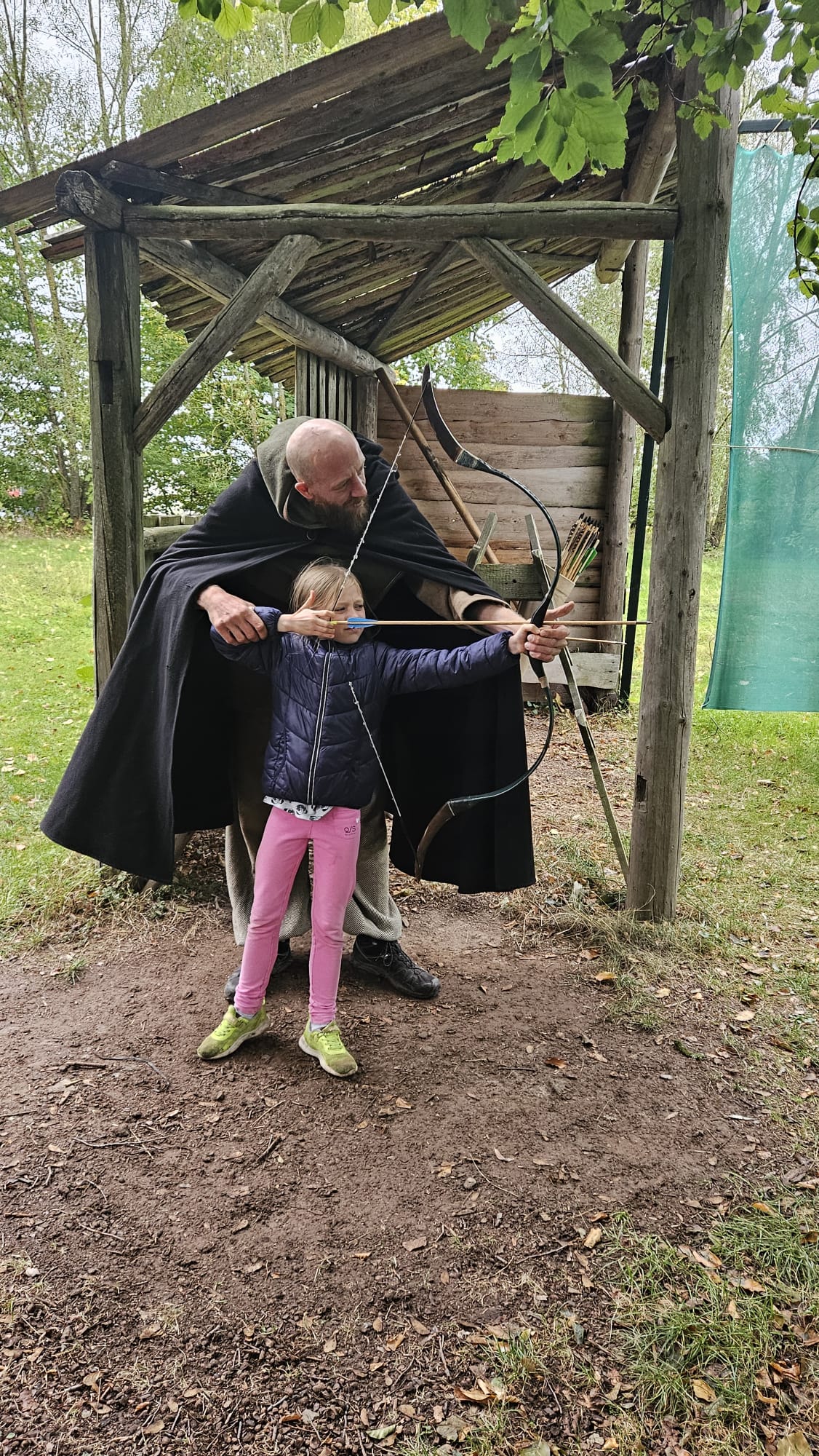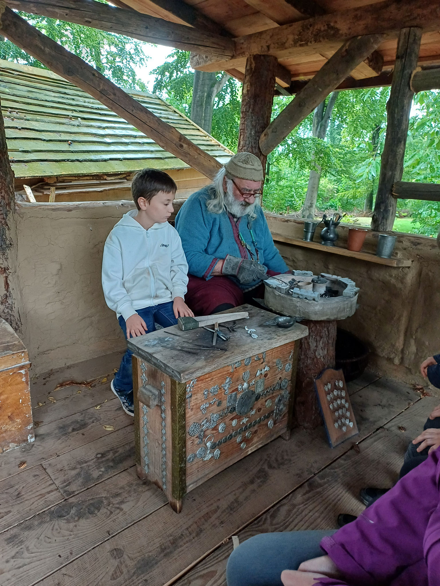 Der Donnerstag war vollgepackt mit mittelalterlichen Abenteuern. Die Kinder stellten Kettenanhänger aus Zinn her, knüpften Lederarmbänder und probierten sich im Bogenschießen und Axtwerfen. Am Abend wurde es gemütlich: Gemeinsam saßen alle am Lagerfeuer, grillten und genossen die besondere Atmosphäre.