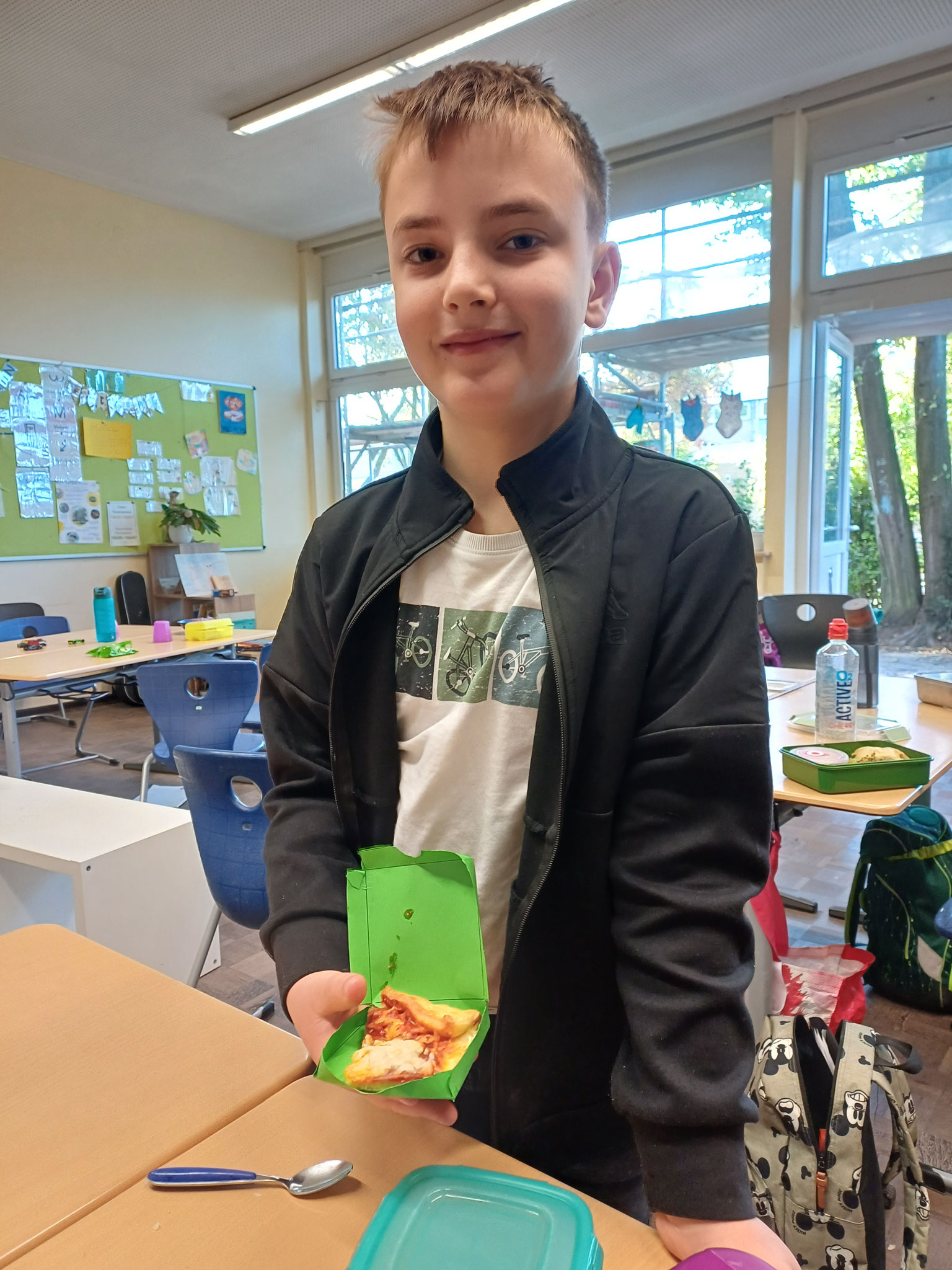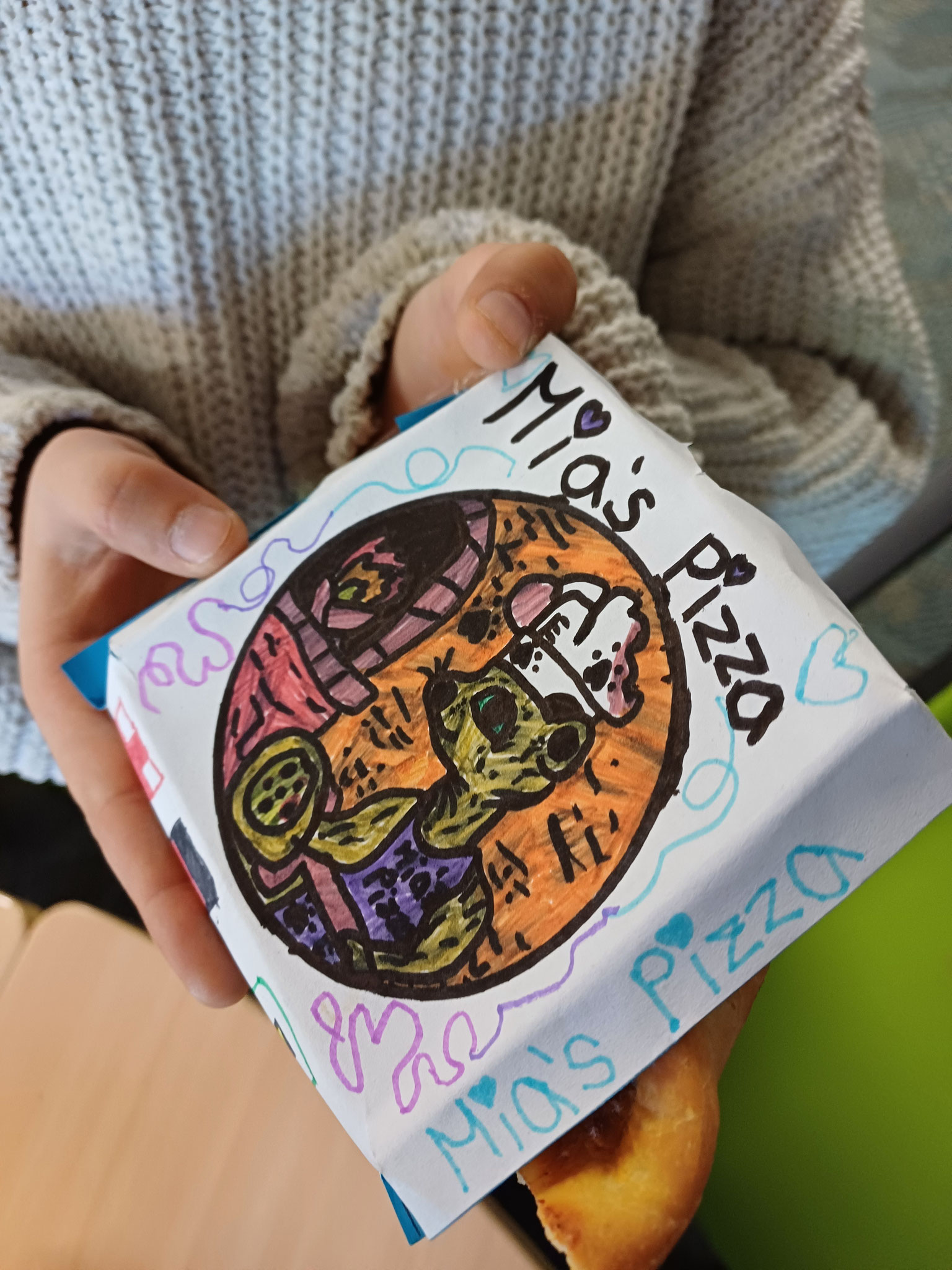 Im Deutschunterricht schrieben die Schülerinnen und Schüler ihre eigenen Rezepte, während sie im Kunstunterricht mit viel Kreativität bunte Pizzakartons bastelten.