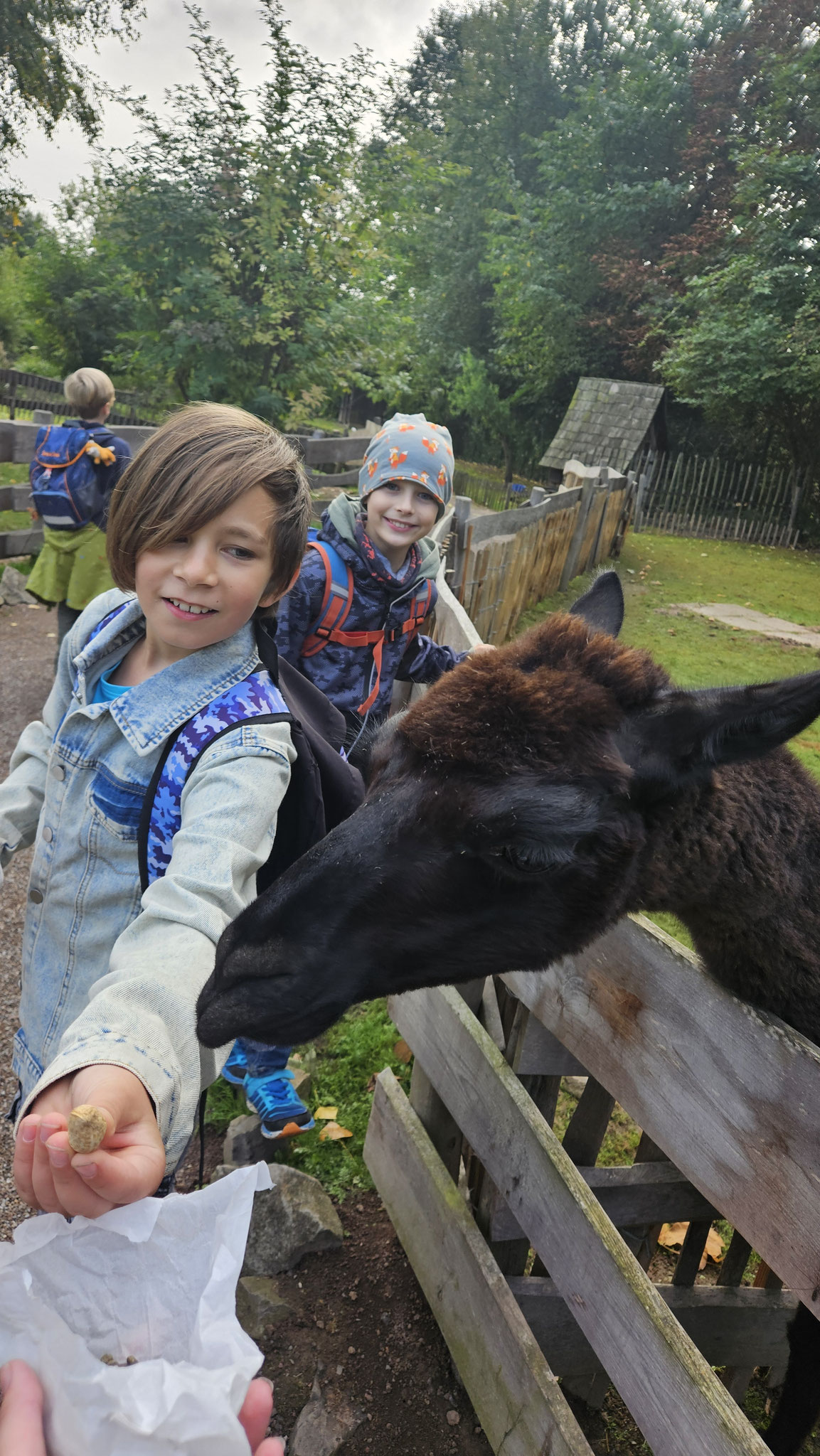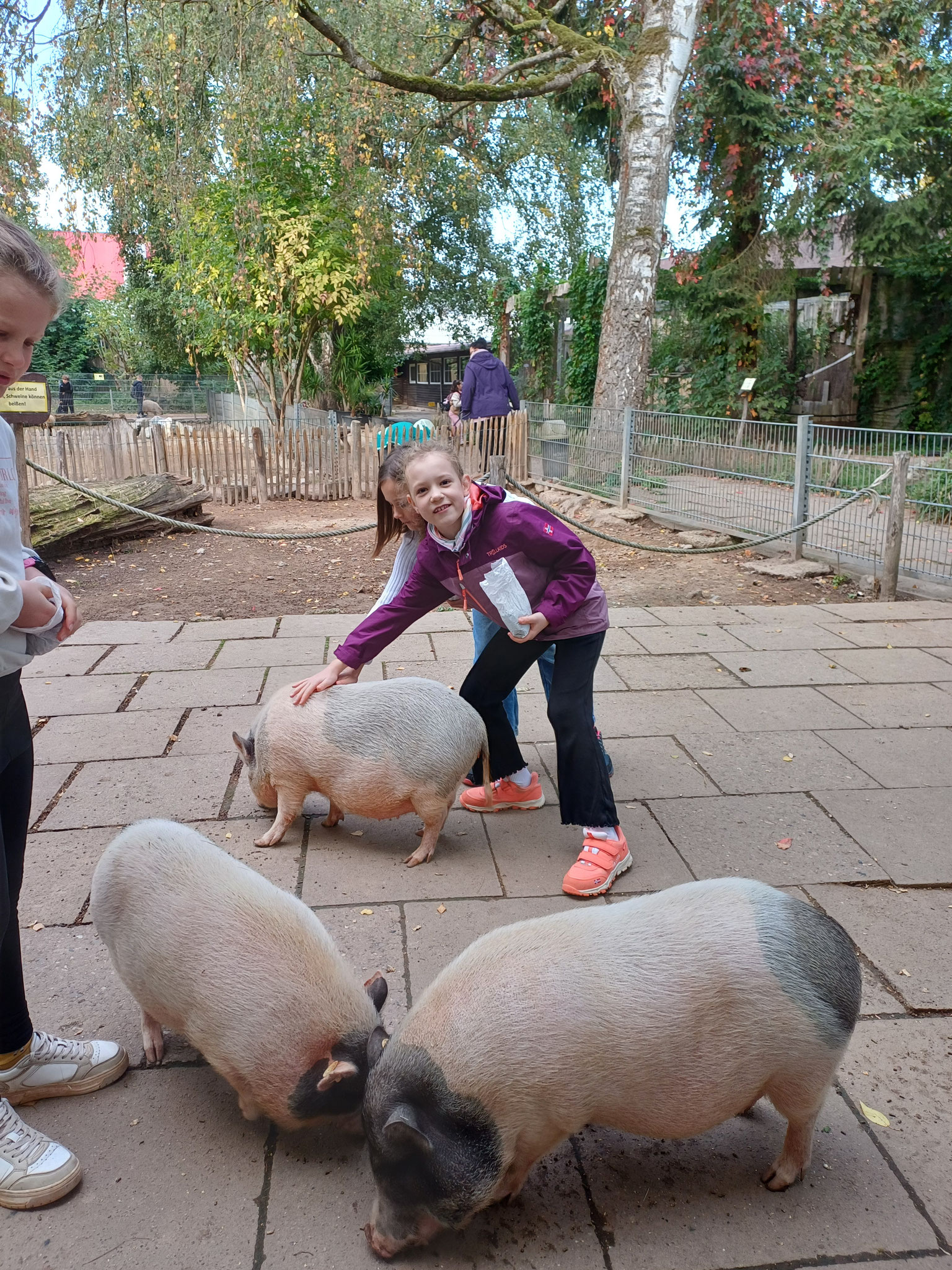 Am Montag, den 22. September verbrachten die Klassen 4a und 4b einen tollen Tag im Tierpark Bad Pyrmont. Schon auf der Zugfahrt war die Stimmung super und alle freuten sich darauf, die Tiere zu sehen.