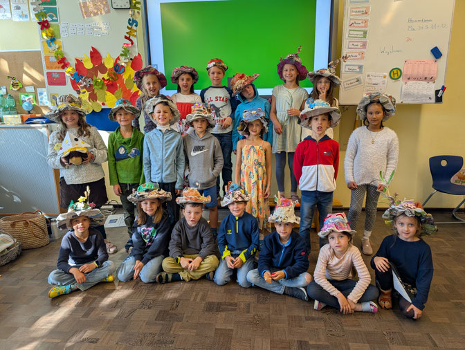 Am Ende präsentierten alle stolz ihre einzigartigen Kopfbedeckungen – jedes Stück ein echtes Unikat!